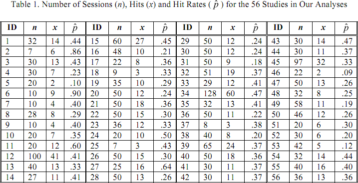 "In 1988 an analysis was made of all of the experiments conducted at SRI from 1973 until that